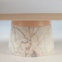 nude lacquered wood top, estremoz white base