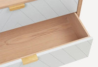 oak, lacquer mdf and gold metal handles