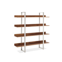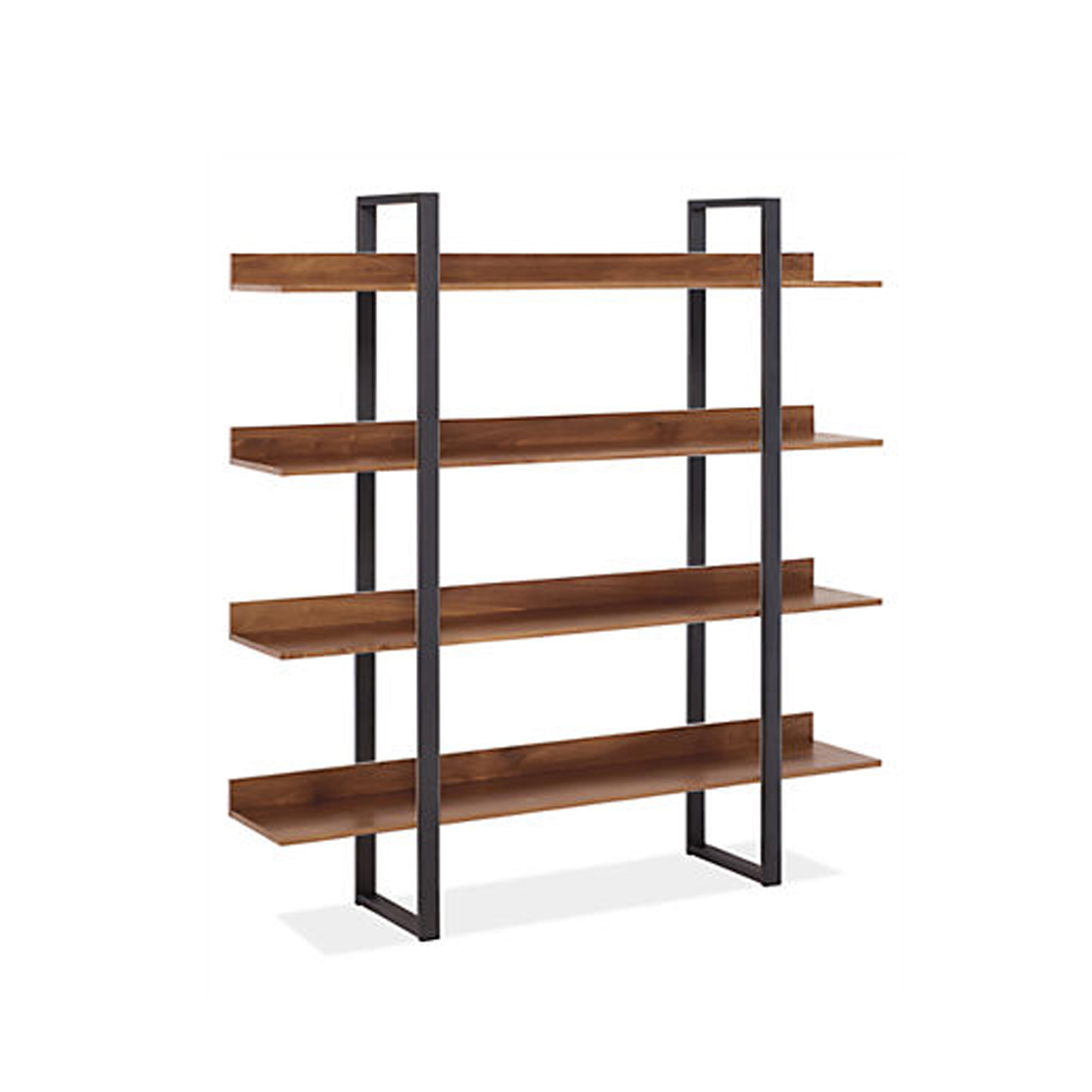 walnut shelves and lacquered metal